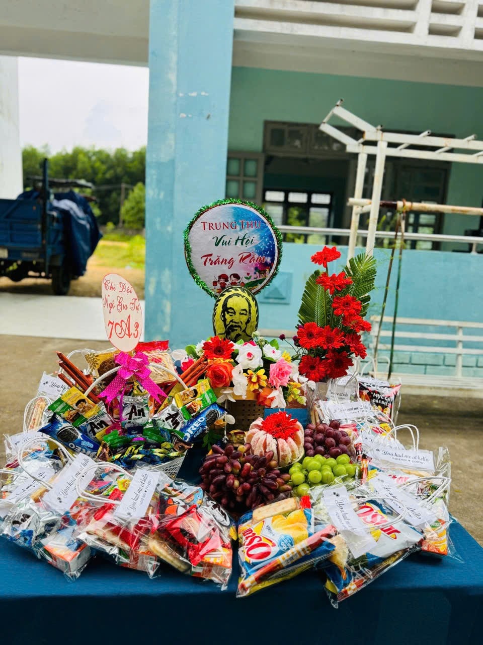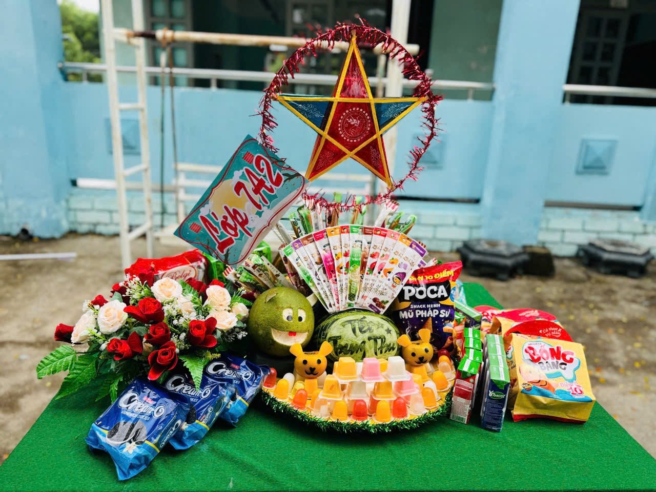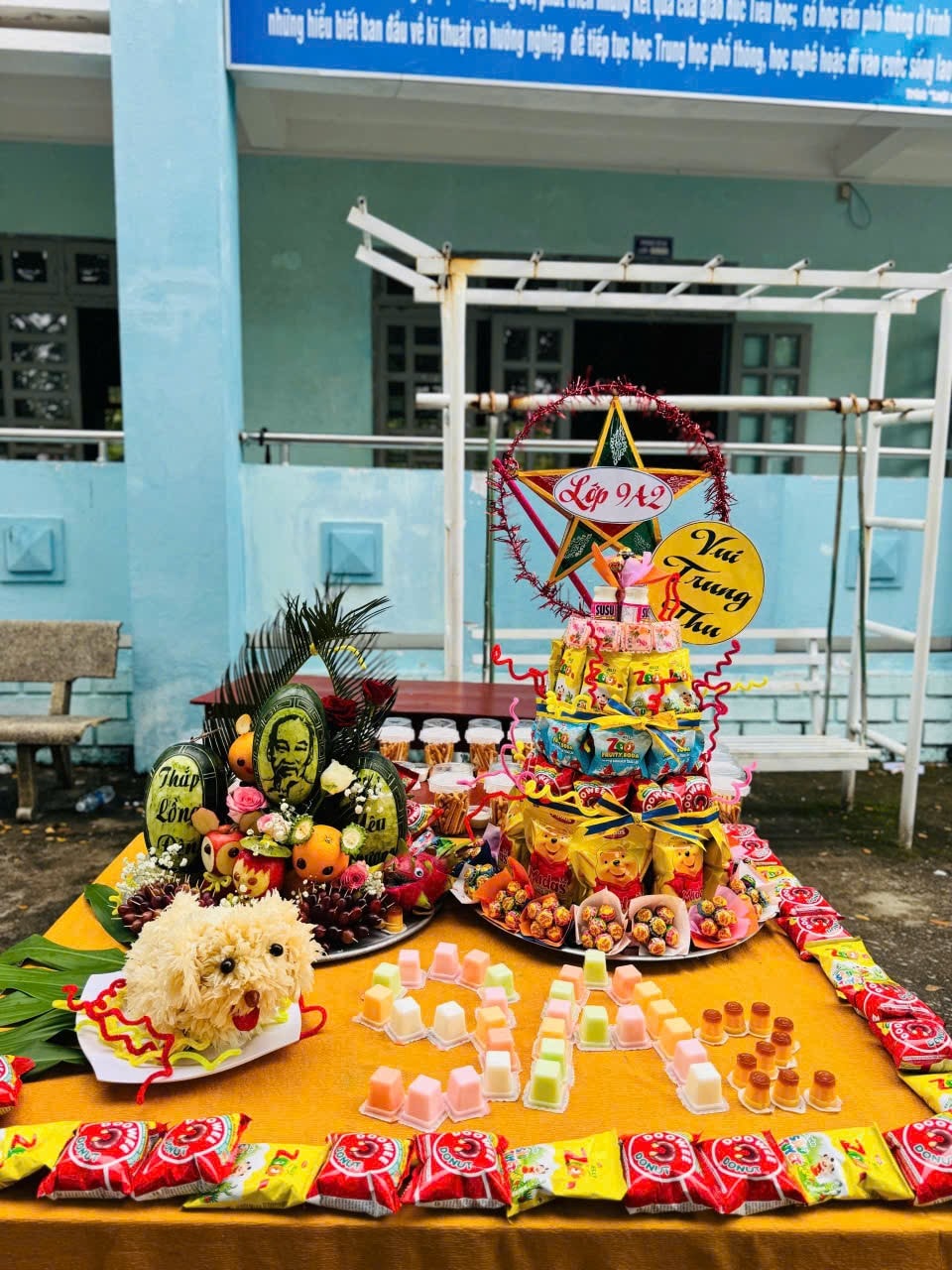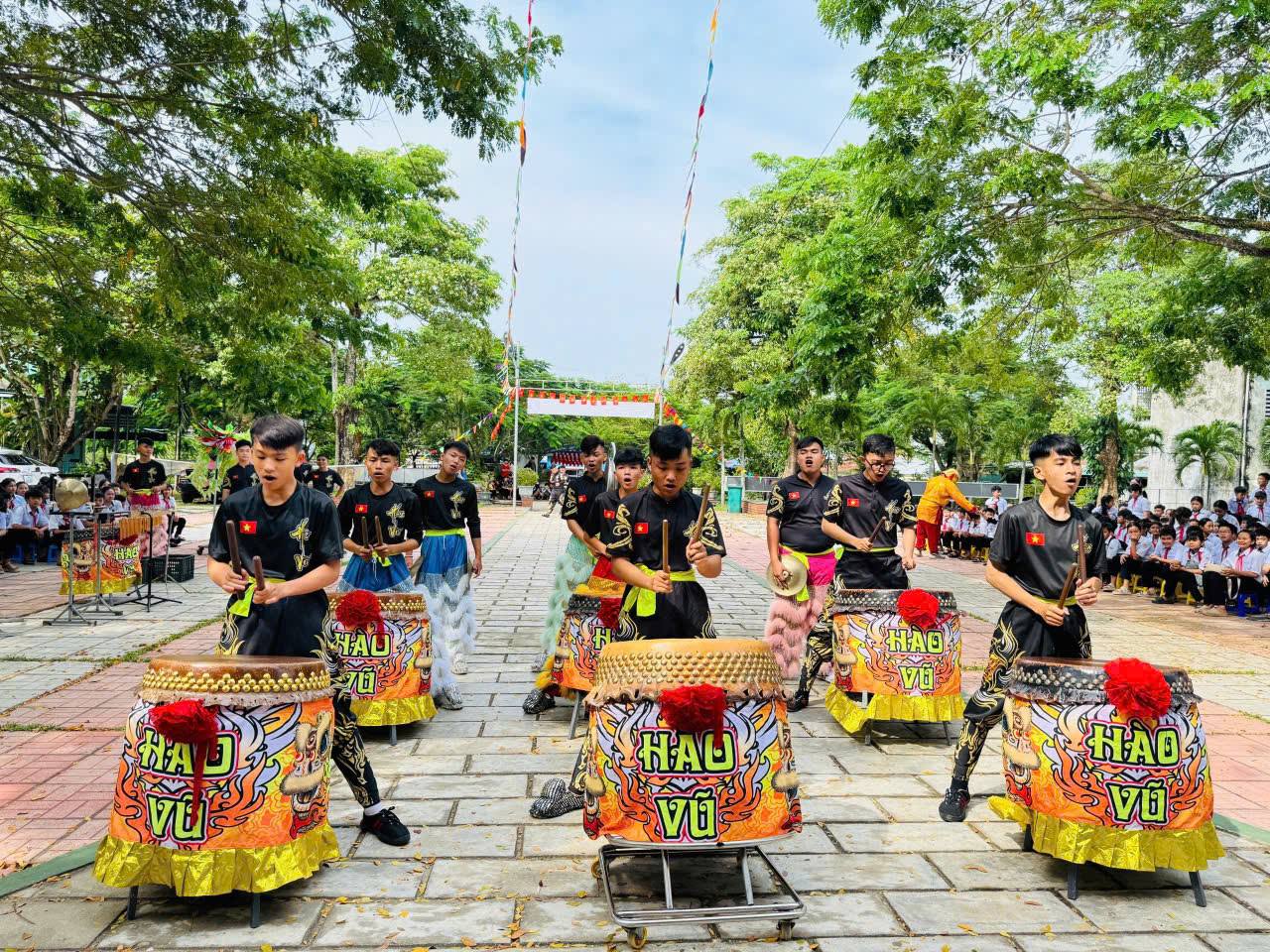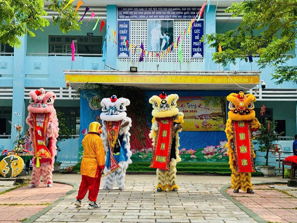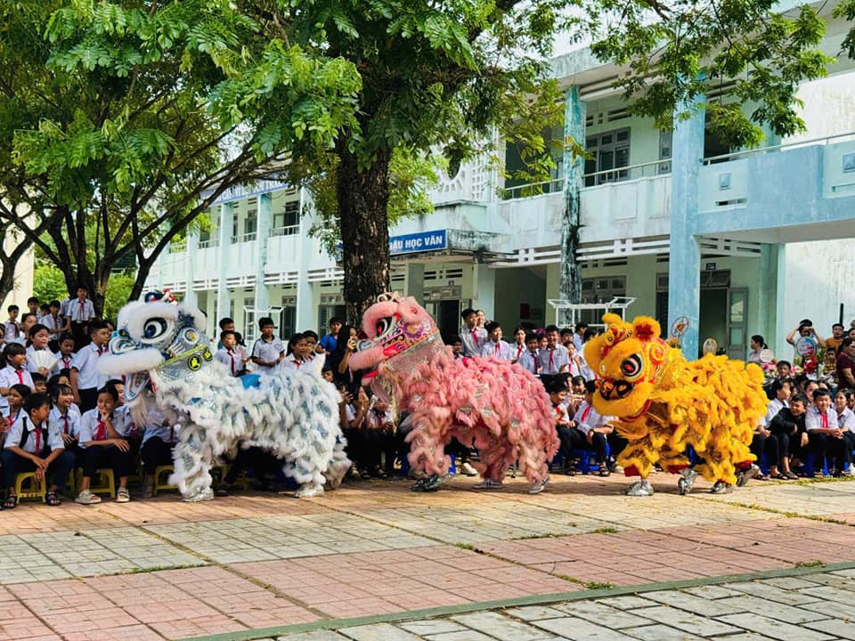 Trong tiếng trống lân rộn ràng, các em học sinh háo hức hòa mình vào những tiết mục văn nghệ, múa lân, rước đèn và tham gia phá cổ. Những mâm cổ được chuẩn bị vô cùng sáng tạo và chu đáo đậm nét hồn nhiên của lứa tuổi học trò. Đặc biệt, phần trao quà Trung Thu cho các em học sinh có hoàn cảnh khó khăn thể hiện tinh thần “lá lành đùm lá rách”, giúp các em cảm nhận được sự quan tâm, sẻ chia của thầy cô, bạn bè và xã hội.