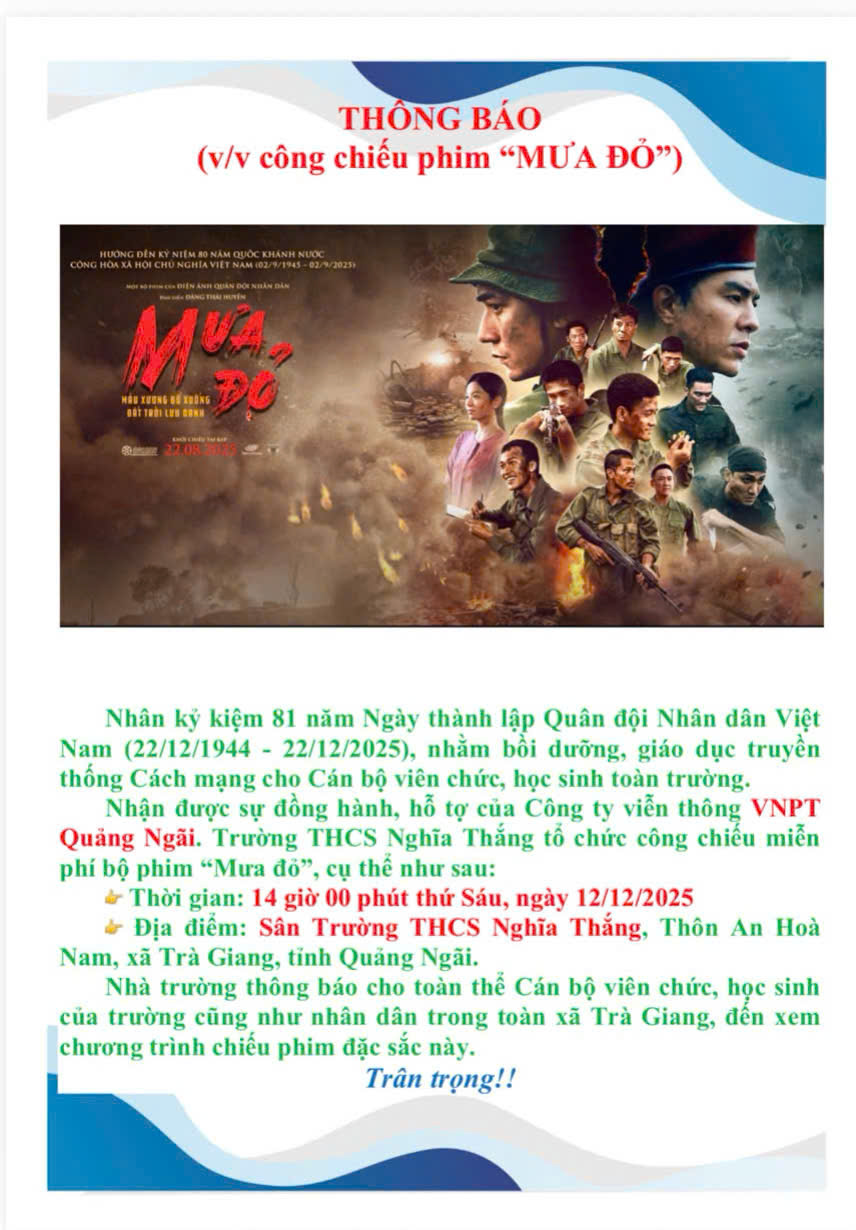 THÔNG BÁO CÔNG CHIẾU PHIM “MƯA ĐỎ”